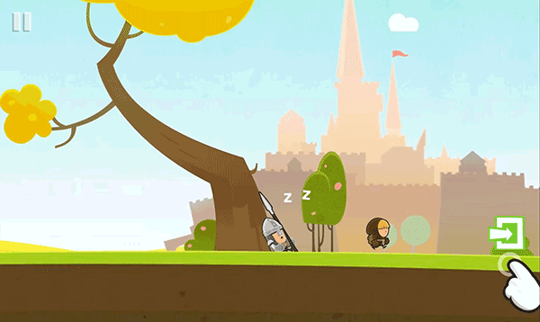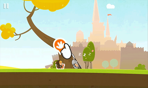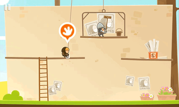 9、移動(dòng)到圖中位置,點(diǎn)擊手掌,繩子松開,中間平臺(tái)掉落。