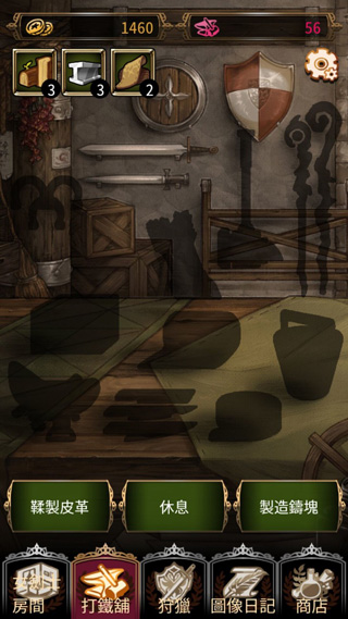 進(jìn)入主頁面我們會發(fā)現(xiàn)在主頁面上的選項(xiàng)并不是很復(fù)雜的,下面就由香蕉君來為大家介紹下其主要功能吧。首先我們會發(fā)現(xiàn)在下方有三個(gè)選項(xiàng):鞣質(zhì)皮革,休息,制作鐵塊。這個(gè)可以在我們閑暇時(shí)間進(jìn)行點(diǎn)擊,每次點(diǎn)擊之后會出現(xiàn)不同的點(diǎn)擊選項(xiàng),來來回回,反反復(fù)復(fù)就會又重新回到界面上所顯示的圖標(biāo)了。此外,在我們每次點(diǎn)擊選項(xiàng)后會有3秒左右的制作時(shí)間,當(dāng)我們等待制作完成后會給我們相應(yīng)的物品儲存到左上方的道具里面,這些道具可以幫助我們滿足顧客訂購的武器之類的重型道具。當(dāng)我們制作一會后會光顧顧客,我們可以根據(jù)顧客的需求進(jìn)行物品制作,這里有的玩家就問了,沒有任何制作功底怎能幫顧客完成商品呢?這里蕉君可以告訴大家,這個(gè)可以大可放心的,顧客雖然要求的商品五花八門的,但是系統(tǒng)為我們提供的制作程序是非常簡單的,比如顧客需要一個(gè)布偶,我們只需要在系統(tǒng)所提示的地方等待布塊過來時(shí)到達(dá)地點(diǎn)后點(diǎn)擊下屏幕就可以了,來回3,4次就制作成功了。在制作完成后系統(tǒng)會給我們的成功率打出分?jǐn)?shù)的,這個(gè)分?jǐn)?shù)就是顧客商品的得分,所以我們要做到最小的失誤獲得顧客的最滿意的笑容。在完成后我們會獲得一定的金幣報(bào)酬的。