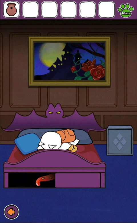 8、向右到達有床的房間,對左側抽屜處的章魚腳使用畫著章魚的罐子,獲得黑色墨水。