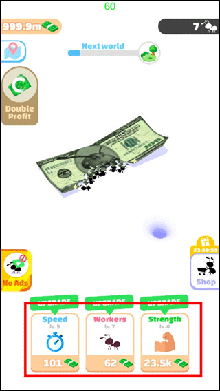 1、首先大家進(jìn)入小蟻帝國游戲,可以看到螞蟻需要搬運(yùn)的物品,也可能是食物,這次小編的是鈔票。