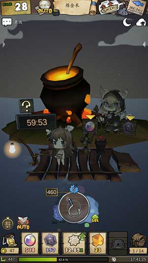 第五關(guān)開啟“魚叉炮臺(tái)”自動(dòng)攻擊裝備,這個(gè)和“自動(dòng)釣魚”“AUTO”是一套放置游戲的標(biāo)配裝置