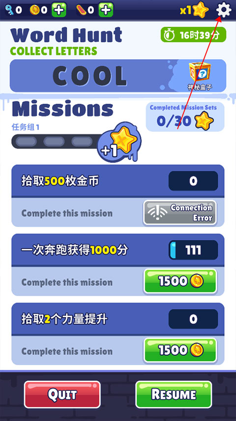 1、進入游戲后點擊左上角的暫停按鈕(下圖紅色箭頭所指)
