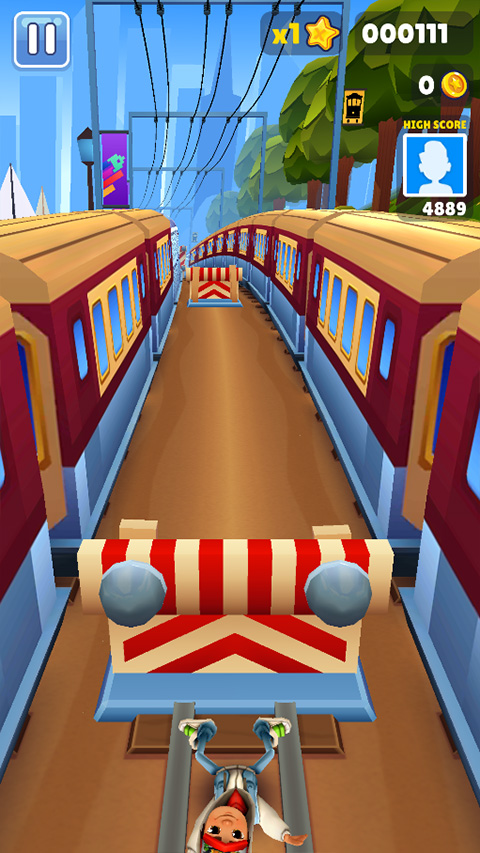 2、進入游戲后就和地鐵跑酷里的玩法一樣,可以左右移動,上下跳躍