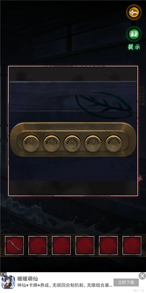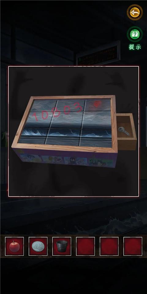 4、根據(jù)箱子上葉子的提示,觀察葉子動(dòng)的幅度可以分為微弱,中等,大幅度,簡(jiǎn)稱123,觀察后得出密碼為12321。得到紅蠟筆,拼圖碎片和筆記本。