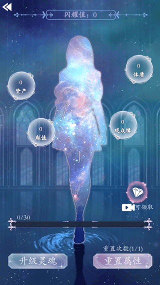 1、進(jìn)入重生頂流練習(xí)生游戲,點(diǎn)擊屬性強(qiáng)化,先領(lǐng)取免費(fèi)的閃耀值