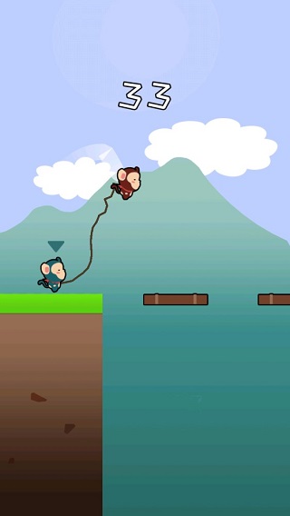 操控兩個角色進(jìn)行挑戰(zhàn),一個猴子跳動的時候另外一個是不動的,玩家要巧妙的控制兩個連在一起的猴子不斷前進(jìn),在這個過程中會有很多困難阻礙,只有跳過障礙才能繼續(xù)前行。