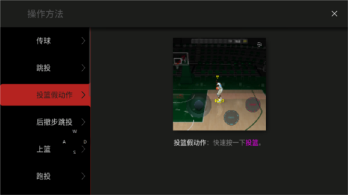 5、其中采用動(dòng)圖形式,為玩家詳細(xì)展示了傳球、跳投、假動(dòng)作、后仰步跳投、上籃、跑投等超多操作。