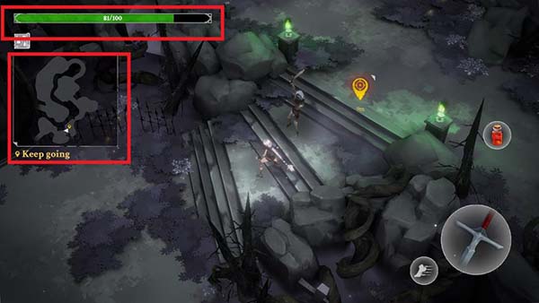 1、進入靈魂獵手地牢官方版游戲后,左手控制角色移動