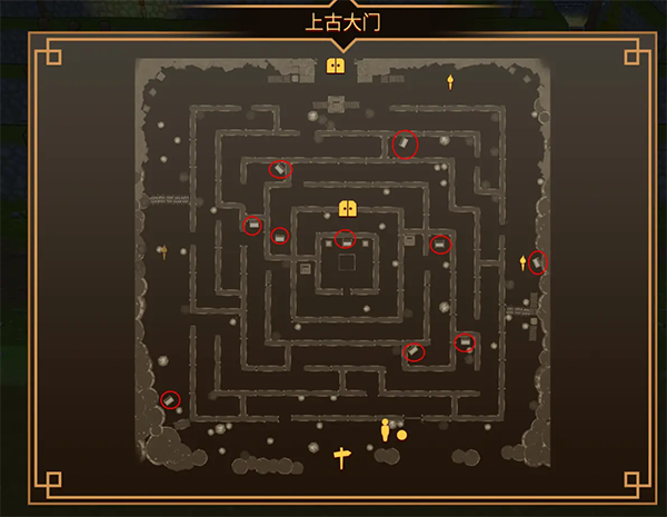 從營(yíng)地右側(cè)地穴門(mén)進(jìn)入的是圖上標(biāo)的“右側(cè)進(jìn)入門(mén)”,穿過(guò)中間地穴也可進(jìn)入此圖開(kāi)啟左側(cè)兩個(gè)寶箱