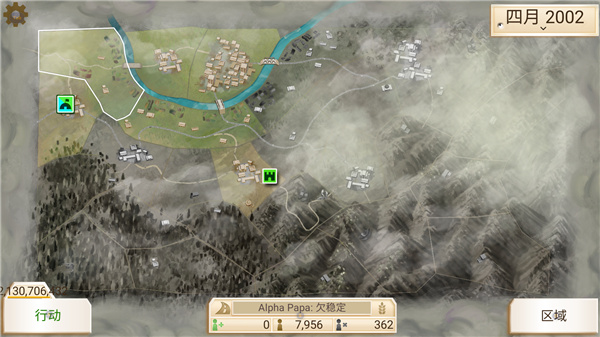 軍隊訓(xùn)練完成后拖至駐防區(qū)平叛。資源收集至關(guān)重要,區(qū)域代表可采集資源(灰色為貧瘠區(qū))