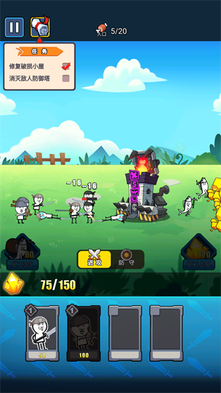 1、正在采礦,收集來的礦石,可用于生產(chǎn)兵力。類似的推薦《火柴人戰(zhàn)爭遺產(chǎn)》也是同樣的操作,所不同的點(diǎn)在于畫風(fēng)的滑稽幽默畫風(fēng),借由網(wǎng)絡(luò)流行用語的表情包搭配,顯得整體畫風(fēng)特別的詼諧。同時,玩法也是延續(xù)經(jīng)典的策略塔防體制,通過咸魚采礦進(jìn)度來收集資源,生產(chǎn)士兵。