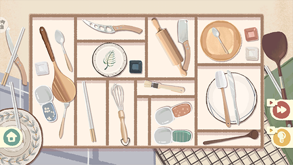 1、進(jìn)入關(guān)卡后,碗柜內(nèi)餐具擺放雜亂,需要耐心整理。