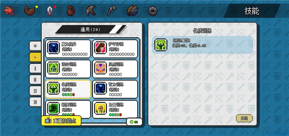 通用技能加1點全能訓練,敏捷和力量加滿,體質加4點。