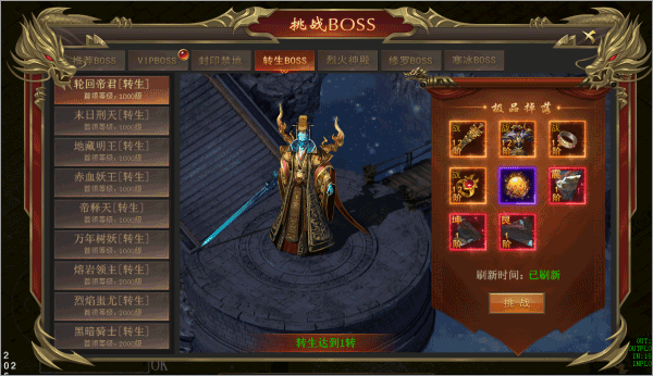 轉(zhuǎn)生BOSS:玩家達(dá)到一定轉(zhuǎn)生等級(jí)后可挑戰(zhàn)對(duì)應(yīng)的轉(zhuǎn)生BOSS,適合追求高階裝備的玩家挑戰(zhàn)。