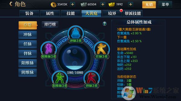 大黃庭系統(tǒng),玩家在一定等級(jí)做完了指引任務(wù)后便可以開啟大黃庭系統(tǒng)了,大黃庭系統(tǒng)需要玩家有足夠的真氣來激活穴位,每激活一個(gè)穴位都會(huì)為玩家?guī)硪欢ǖ膶傩约映?,大黃庭境界越高,加成越多。真氣的獲得也有副本,或者在商城直接購(gòu)買真氣丹。每個(gè)大穴位全部激活后需要一定數(shù)量的破障丹來打破屏障,5個(gè)大穴位全部激活后就可以達(dá)到下一重境界。