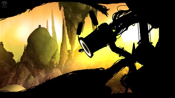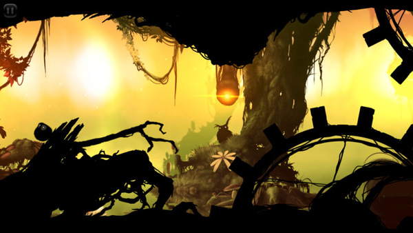 2、圖中眨巴著眼睛的小黑球就是我們這場森林冒險忠實(shí)的小伙伴了,點(diǎn)擊屏幕后,整個畫面就會勻速后退,這是唯有不斷點(diǎn)擊屏幕才可以讓小黑往前飛,飛越枯木與礫石,躲避機(jī)關(guān)和陷阱,抵達(dá)森林的盡頭。