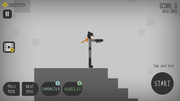 3、選擇好姿勢后,就可以點(diǎn)擊‘START’按鈕開始往下跳了。按Start按鈕時(shí),我們可以按住不放,會有畜力的效果,畜力越滿,表示使的勁越大。