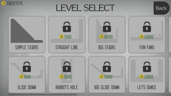 5、關(guān)卡頁面如圖,除了第一關(guān),其他的關(guān)都需要有足夠的金幣才能解鎖,我們可以重復(fù)玩第一關(guān),獲取到足夠的金幣,才能解鎖第二關(guān)。