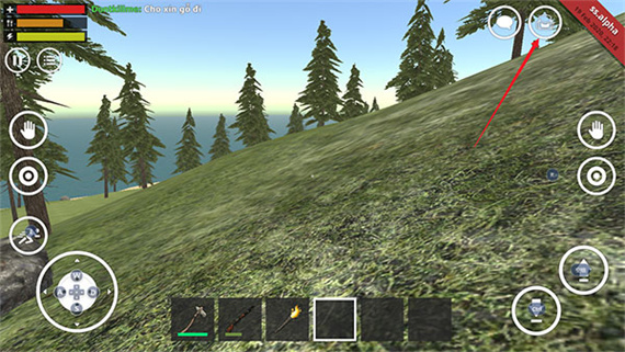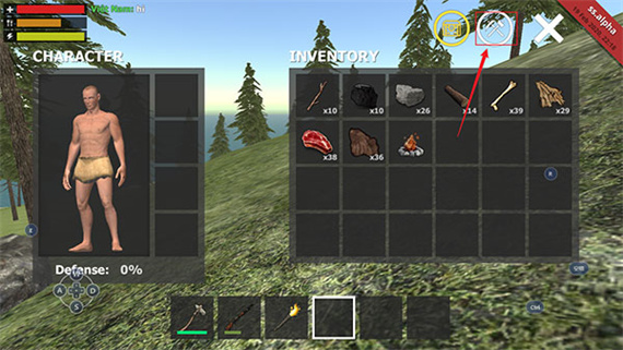 1、在野外生存模擬器游戲中點擊左上角的背包圖標。