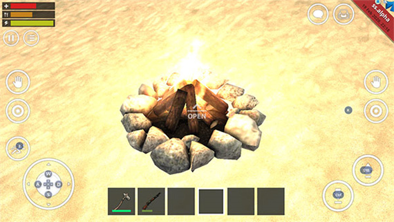 9、移動角色焦點,當營火上出現(xiàn)OPEN圖標后可通過點擊“眼睛”圖標使用營火。