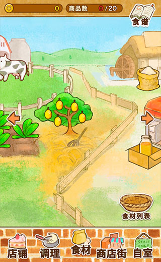 3、點(diǎn)擊底部的【商業(yè)街】可以采購各種食譜來制作美味的甜品。