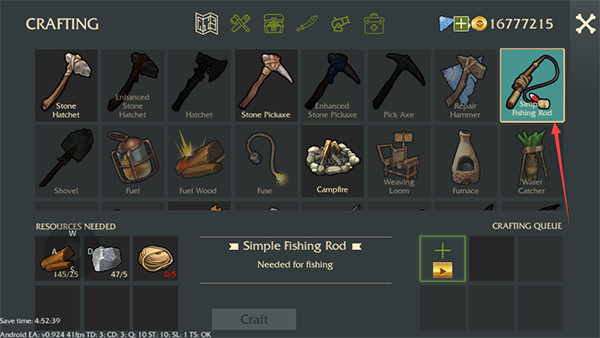1、在工具制造頁(yè)面消耗材料制作魚竿
