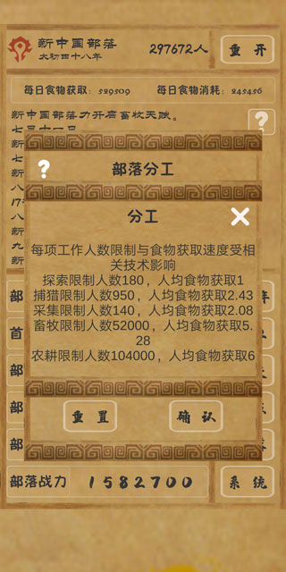 ③生育:高玩可以挑戰(zhàn)第三個(gè),我一百三十萬的存檔就是從這里開始一直暴人口,玩的有點(diǎn)心驚膽戰(zhàn),一般玩家可以點(diǎn)第二個(gè),游刃有余,也不會(huì)太累。注意,生育和滅部落才是部落最重要的人口來源,而不是游民。