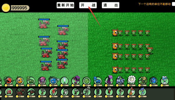 2、敵人會擺好陣勢,你可以利用你自己的陽光放置相對應(yīng)的植物或僵尸。