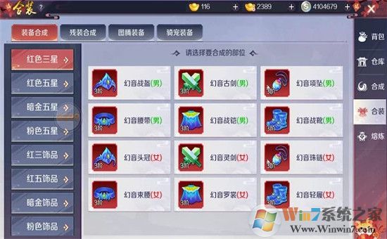 對(duì)了,這里一開(kāi)始很多剛玩的玩家是不知道裝備是可以合成的,大家看到上面這個(gè)圖合成按鈕了嘛,一開(kāi)始最基礎(chǔ)的副本里面可以打到紅三星裝備,然后大家就可以用這些紅三星來(lái)合成紅五星了,三星裝備的屬性加成是比較少的,比較雞肋,最好都是優(yōu)先使用紅五星的裝備,且一開(kāi)始3階裝備的合成成功率是百分之一百的。如果大家裝備不夠的話(huà),建議大家能夠進(jìn)一個(gè)排名比較前的公會(huì),活躍人數(shù)多一點(diǎn),進(jìn)入到人多的公會(huì)中,就會(huì)有公會(huì)倉(cāng)庫(kù),然后很多人用不完和不同性別的裝備就會(huì)扔到倉(cāng)庫(kù)中,這時(shí)候就要看手速了哈哈。