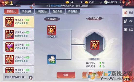 裝備系統(tǒng)還有一個(gè)比較重要的地方就是煉器系統(tǒng)了,這個(gè)也是裝備系統(tǒng)的核心,包括了鍛造、寶石和套裝,這三個(gè)加成的戰(zhàn)力都非常多。首先裝備強(qiáng)化一開(kāi)始都要強(qiáng)化到最高級(jí),放心這時(shí)候銀幣是夠用的。然后裝備洗練的話(huà)洗練到紅色和橙色屬性都可以停了,一般橙色的都比較不錯(cuò)了,然后把紅色和橙色的鎖定下來(lái)再繼續(xù)洗練。再看看寶石鑲嵌,寶石的話(huà)一開(kāi)始會(huì)有挺多的1級(jí)寶石,這個(gè)需要自己去點(diǎn)擊提升寶石的等級(jí),初期的話(huà)提升到4級(jí)寶石就很強(qiáng)了,不行可以先用3級(jí)寶石頂著用。套裝是戰(zhàn)力加成最多的地方了,會(huì)有分為三個(gè)階段的套裝,包括幻靈套裝、入圣套裝和超神套裝,合成越高級(jí)的套裝,需要的幻靈套裝石和入圣套裝石比較多。這些套裝石可以從輪回幻境、萬(wàn)妖荒域、心魂秘境和國(guó)家版圖中獲得,也有一些限時(shí)禮包可以購(gòu)買(mǎi),看到有比較高性?xún)r(jià)比的禮包就可以直接購(gòu)買(mǎi)哦,這樣套裝成型就會(huì)很快。