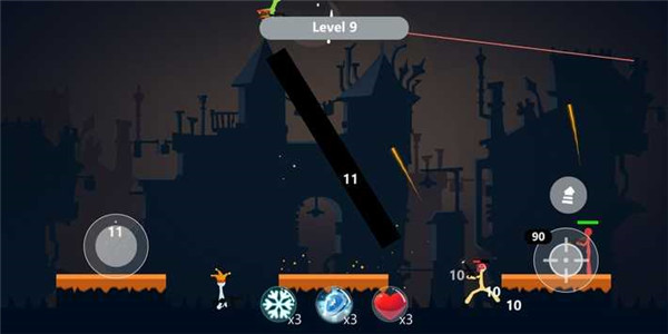 1、控制火柴人擊敗不同的敵人;