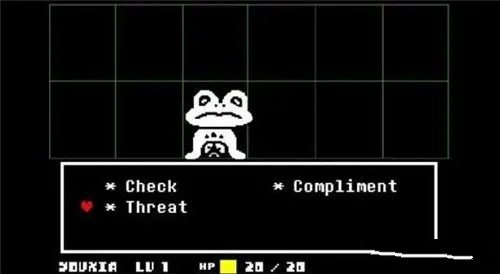 除了殺死怪物之外,玩家還可以在“act”動(dòng)作選項(xiàng)中選擇相對(duì)的行為,選擇之后怪物會(huì)做出相應(yīng)的反應(yīng),用文字或者畫(huà)面展現(xiàn)在上方的對(duì)話框中。