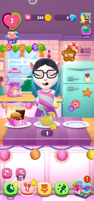 在安吉拉的廚房,我們需要注意不少事情。我們可以去點擊后面的冰箱,購買食物,讓安吉拉一口吞下。但并不是什么東西都是可以去吃的,餐桌上的饑餓藥水,如果我們讓安吉拉喝下后,就會導(dǎo)致她的飽腹感變?yōu)?,我們讓安吉拉吃下去的食物也會毫無作用。安吉拉后面的榨汁機(jī)如果頻繁使用,會發(fā)生巨大的爆炸。而且會濺到頁面上來,我們就需要多次點擊污漬,才可以去除哦!