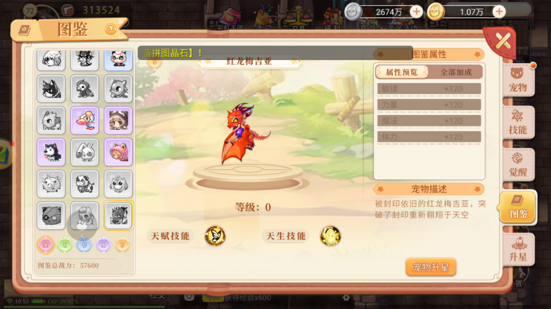 通過(guò)世界BOSS獲取,職業(yè)前十有保底碎片不然只能開(kāi)箱子。沒(méi)空的上線摸一下就好,傷害前9999的玩家有保底木箱子。這還是削過(guò)之后的屬性,剛出來(lái)的時(shí)候,24%的增傷,要不是只能拿一個(gè)就沒(méi)有其他寵物什么事了。