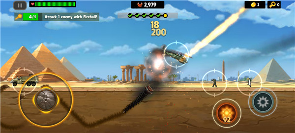 1、炸毀汽車和坦克;降下飛機和直升機,甚至是外星飛碟!戰(zhàn)斗并摧毀40多種類型的敵人;