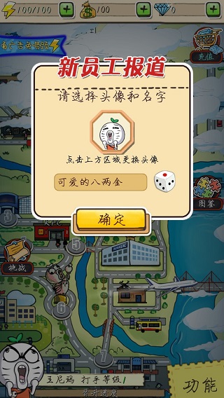 看過暴走漫畫的朋友對小編今天推薦的這款游戲并不陌生,這個游戲就是出自于它,對于暴走大事件的王尼瑪講訴的各種無節(jié)操段子引起大眾歡笑連連,滴滴打手為我們展現了大部分搞笑劇情,在里面你可以申請成為職業(yè)打手,賺取傭金,出任CEO,贏取白富美,并最終走向人生巔峰。話不多說,接下來小編將帶你熟悉這個充滿惡搞趣味的街機世界,進入游戲后會讓你輸入你的名字和頭像你想啥都行,也可以隨機選,選好后點接受就進入了第一關。