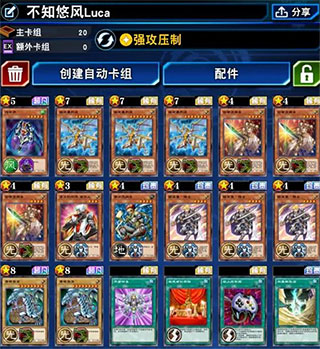 【弧光勇烈龍】和【青眼的白龍】:核心王牌卡,可以搭配卡組的怪獸效果輕松召喚出來(lái),擁有高額的攻擊力的它們,可以輕松解決大部分?jǐn)橙恕?br /> 【創(chuàng)世龍騎士】和【巨龍圣騎士】:是游戲中最為中堅(jiān)的力量,利用它們可以輕松將高等級(jí)的青眼的白龍?zhí)厥庹賳境鰜?lái)。