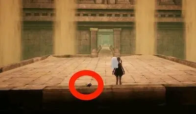 3、打倒第三個(gè)雕像后爬樓梯的途中,在較遠(yuǎn)處有一只黑鳥(niǎo),很難看到,給三個(gè)特大武器強(qiáng)化素材