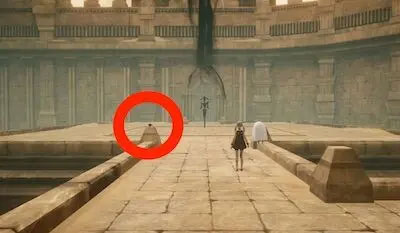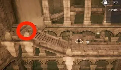 2、打倒第二個(gè)雕像后爬螺旋樓梯時(shí)前面的柱子上有一只黑鳥(niǎo),給一張高級(jí)門(mén)票