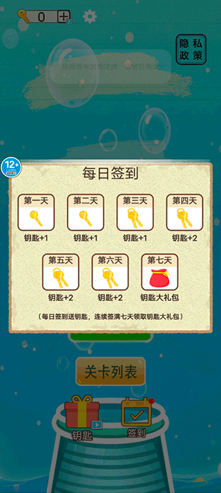 2、點(diǎn)擊每日簽到可領(lǐng)取鑰匙,可用來?xiàng)l過關(guān)卡;