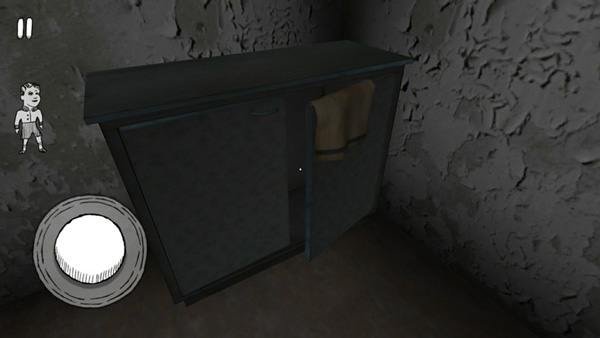 8、藏身地:游戲中可以藏身的地方有大衣柜,大衣柜打開后走到衣柜里然后關(guān)上門就可以了。打開的矮柜子,當(dāng)你的白點(diǎn)指到他敞開的口時(shí)屏幕的右上方會(huì)有一個(gè)圖標(biāo)點(diǎn)擊進(jìn)入后就可以鉆進(jìn)柜子了,這個(gè)柜子在二樓。