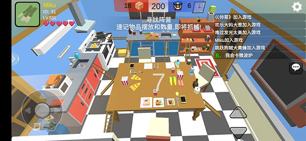 1、二十三張地圖:學(xué)校、迷你城市、珠寶行、公寓、監(jiān)獄、工地、城堡、賽車場、醫(yī)院、軍事要塞、辦公室、空間站、航天基地、小鎮(zhèn)、碼頭、酒店、火星基地、別墅、巨人廚房、野外營地、訓(xùn)練營、教堂、游戲世界。每張地圖,躲藏者可以偽裝成60多種物品。2、口哨:躲藏者可以使用3D聲音口哨嘲諷尋找者,口哨半徑10米,已有:吹口哨、略略路、打呼、放屁、拉臭臭、烏鴉、彈簧、貓狗叫等等聲音。