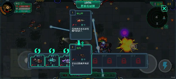 打完第二個boss差不多是十幾級,這時候來到了中期,由于紅色機(jī)甲速度慢,所以一直走不要呆在原地,一來有可能完不成任務(wù),二來會被追上群毆。邊走邊發(fā)育,用高傷害的火箭筒打比較大的小怪。