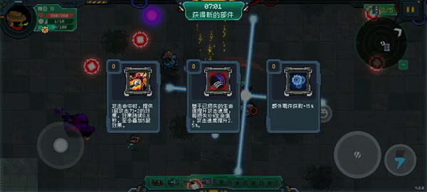 增加零件獲?。∵@個非常重要,一定一定一定要點,能點這個一定不要點其他的。發(fā)育才是萬物的根本,后面發(fā)育到30幾級,身上都是高等級裝備和武器,越打升級越快,戰(zhàn)斗力直線上升。40級以后打最終boss基本上就和打小菜一樣。