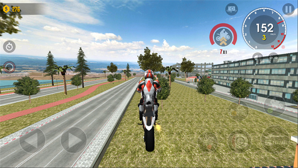 讓摩托車走得更快,玩家需要依靠后輪來(lái)驅(qū)動(dòng),后輪驅(qū)動(dòng),抓地力更足。長(zhǎng)按加速鍵,然后適當(dāng)?shù)南蚝髢A斜即可。