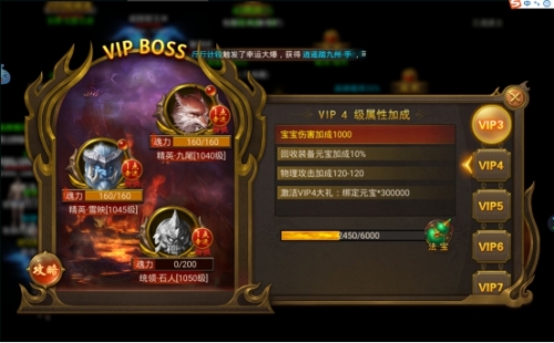 游戲內(nèi)只要擊殺VIP首領(lǐng),可迅速積累VIP經(jīng)驗,經(jīng)驗?zāi)苊赓M(fèi)提升VIP等級,獲得相應(yīng)的福利特權(quán),在這里VIP不再是土豪的專屬!