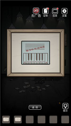 9、來到右邊桌子把手柄和公仔一起放上去獲得日記紙。來到鋼琴從墻上獲得1234567紅點(diǎn),再彈出5534553出現(xiàn)新音符。