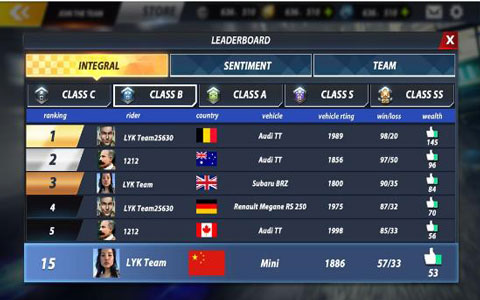 五個(gè)級(jí)別的獨(dú)立排名賽,讓你與世界各地的車手一較高下!