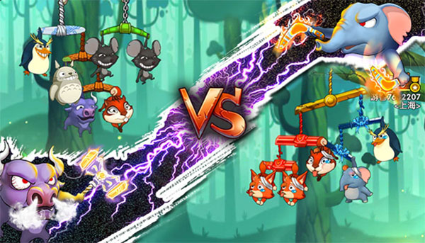 別看這些動(dòng)物這么可愛,打起來(lái)一個(gè)都不含糊。別忘了,這可是款競(jìng)技游戲,雖然打起來(lái)根本沒(méi)有常規(guī)對(duì)戰(zhàn)的緊張感,但也是全球?qū)崟r(shí)PVP的。玩家需要將動(dòng)物們和各種棍繩進(jìn)行組合搭配,選擇最適合自己的方式,將對(duì)面的動(dòng)物擊落繩下。這樣的彈射玩法不需要玩家有多犀利的操作,一鍵瞄準(zhǔn)即可發(fā)射!