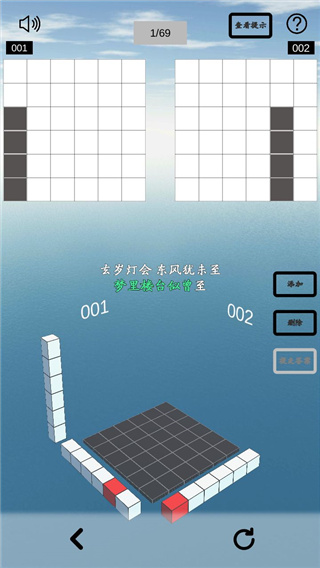 這里是因?yàn)閺南轮辽纤膶酉嗤?,所以如圖,一次性選中從下至上四層方塊,點(diǎn)擊添加,現(xiàn)在可以看到提交答案選項(xiàng)亮起,代表答案正確,點(diǎn)擊它